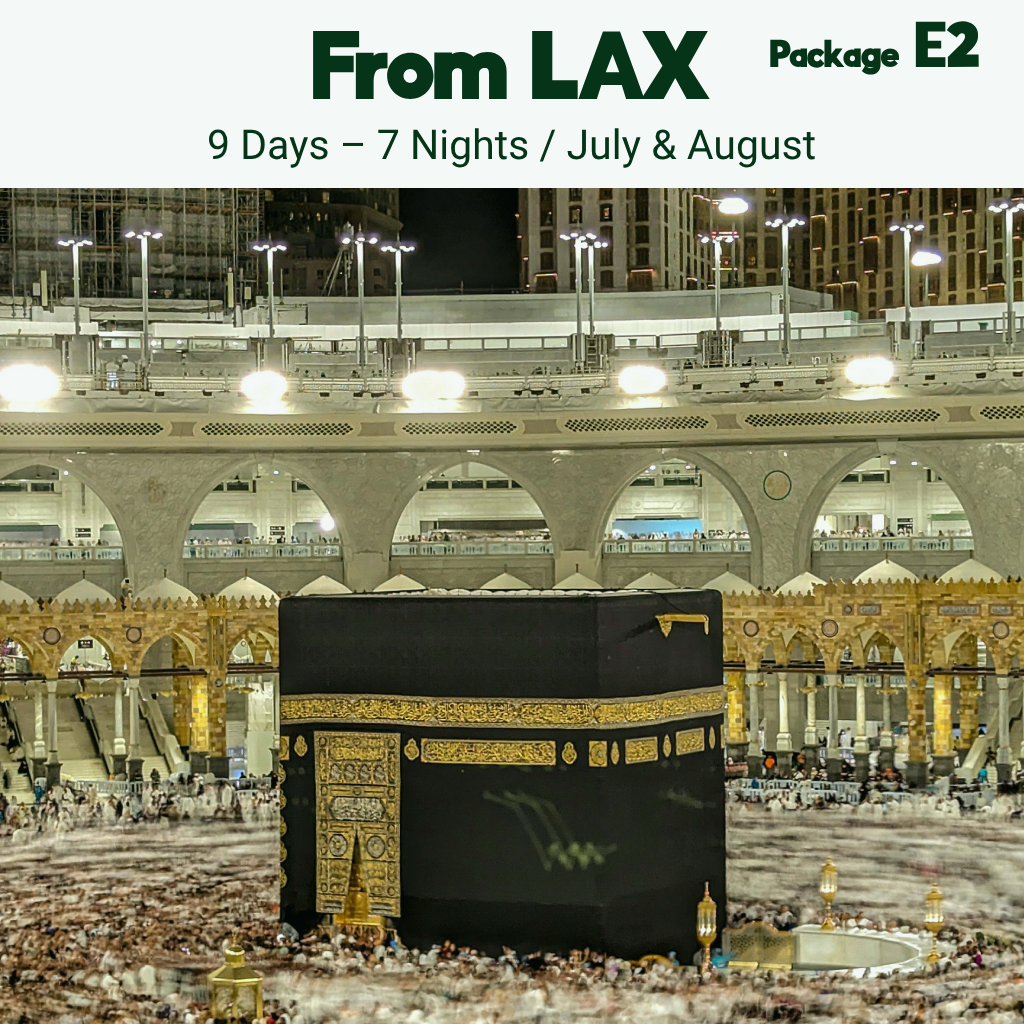July & August Umrah From Los Angeles (LAX) - Package E2 - 9 Days / 7 NightsJuly & August Umrah From Los Angeles (LAX) – Package E2 – 9 Days / 7 Nights